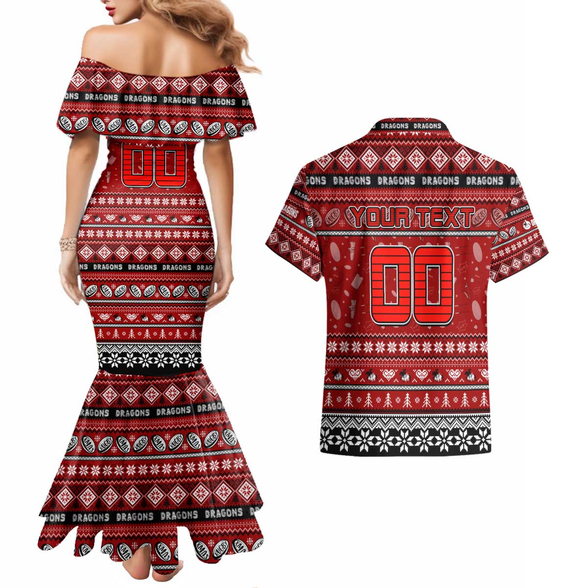 Personalized Dragons Rugby Xmas Couples Matching Mermaid Dress and Hawaiian Shirt Australia NRL Mascot DT02