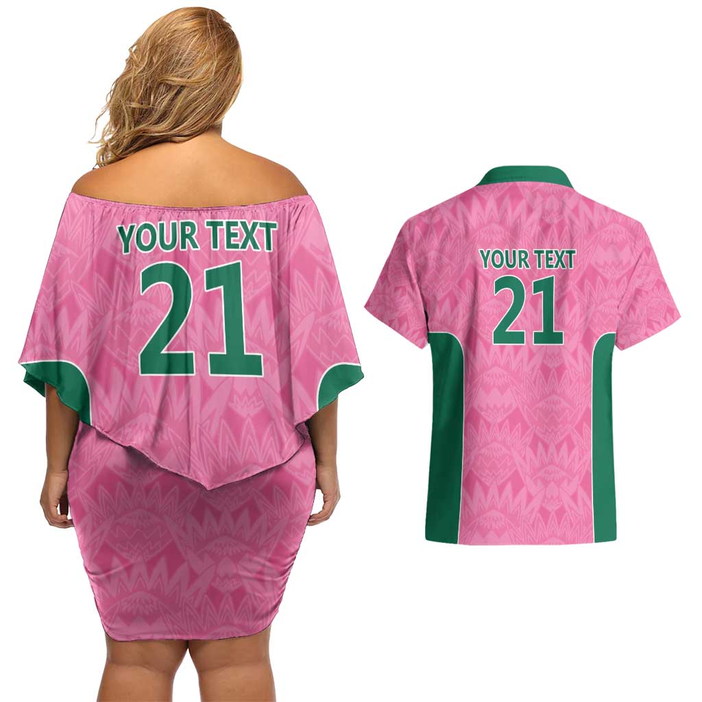 Pink South Africa Cricket Custom Couples Matching Off Shoulder Short Dress and Hawaiian Shirt Proteas Be Way Pink LT9