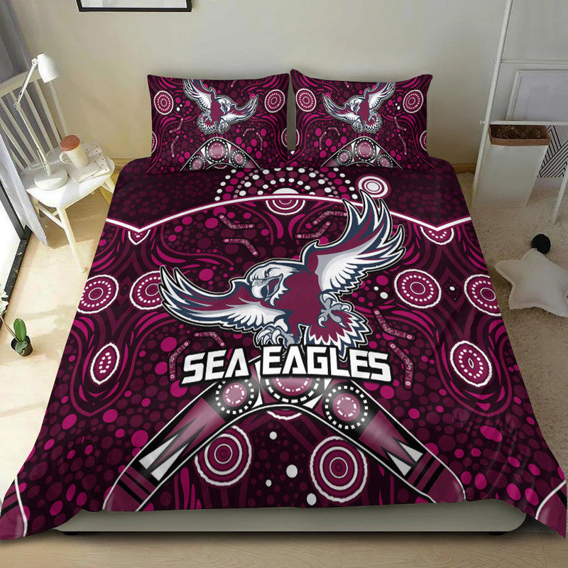 Sea Eagles Rugby Bedding Set Boomerang Indigenous Dots LT9