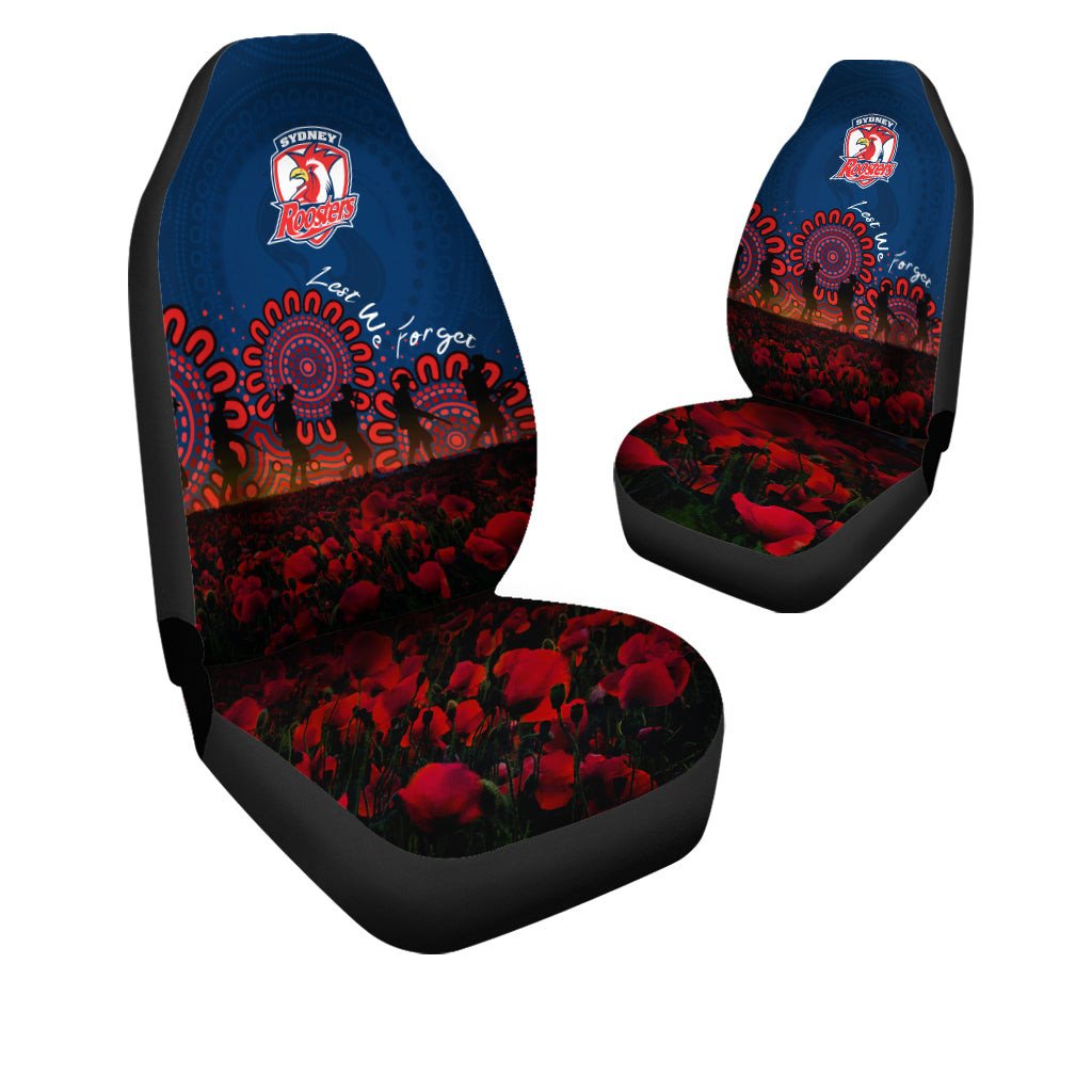 Sydney Roosters Car Seat Covers Aboriginal Rugby Anzac Day Poppy With Soldiers- NRL LT10