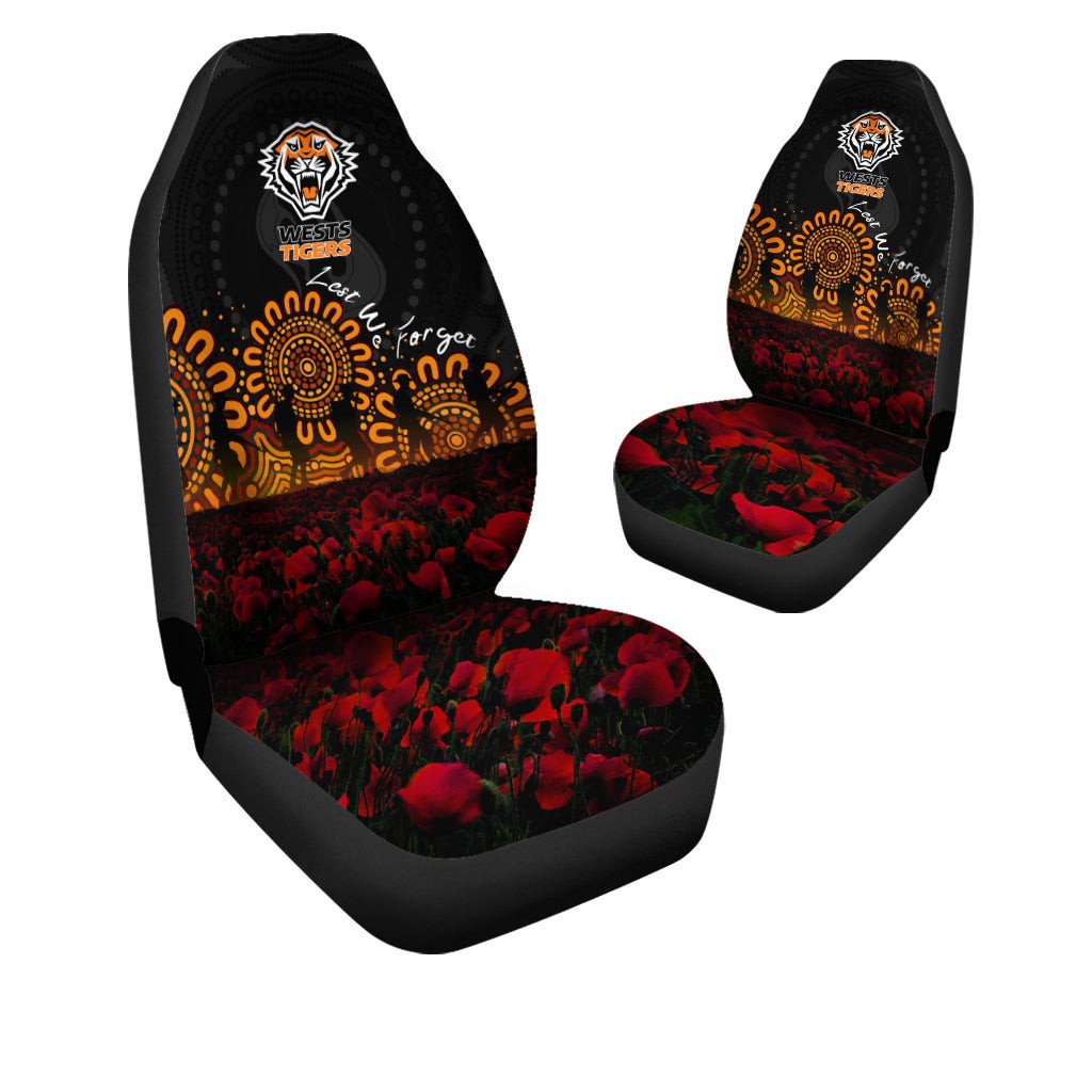 Wests Tigers Car Seat Covers Aboriginal Rugby Anzac Day Poppy With Soldiers- NRL LT10